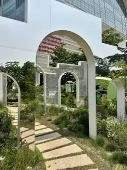 The Water Garden located in front of Lotte World Mall is designed like a small urban garden. With its gently flowing waterways, trees, and grass harmoniously arranged, it provides a peaceful space to catch your breath amidst the bustling Jamsil cityscape. Especially during sunny afternoons, the lighting makes for great photos. It also seems like a nice spot for a light stroll or a date. It's a perfect place to take a short break before or after shopping.