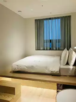 The room is very simple yet charming, with a raised bed area and lovely color tones. The toilet and shower room are clean and well-maintained. ✨