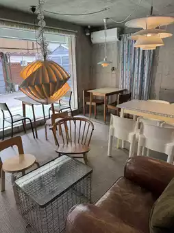 The interior features antique furniture and stylish decor, creating a cozy atmosphere.