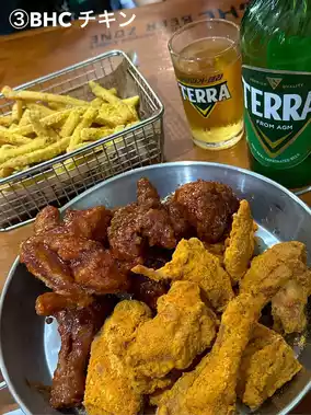 → Highly recommended for those craving crispy chicken! The portions are large, so it’s best to go with a group🌟 I paid an extra fee to get a half-and-half mix of chicken flavors🌶️🌶️ The side menu items, like the fries, were also delicious♡