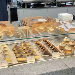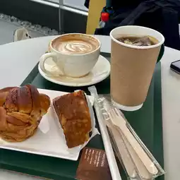 I ordered a cinnamon roll, brûlée cheesecake, an Americano, and a latte on the first floor, then took the elevator to the rooftop to enjoy them, haha. The indoor area tends to echo a bit, so I went to the rooftop, and luckily, the weather was perfect. However, the buzzers don’t work on the rooftop, so I ended up waiting for a while before noticing the sign and going back down, haha.