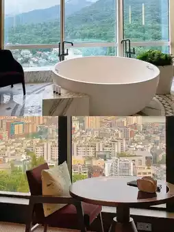 The bathroom in the Grand Hyatt Suite is much more interesting than in standard rooms, consisting of a shower room, storage room, and washbasin area. The three-panel mirror radiates a noble aura from the inside out and is the focal point of the entire bathroom. Black showers are indeed rare in luxury hotels; the walls are made into a full mirror, effectively breaking the sense of confinement. After a day of exploring and eating in Seoul, a relaxing bath is truly needed to soothe the whole body.