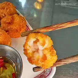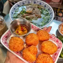 After a morning of feeling uneasy after oversleeping, I had a delicious lunch with soft real rice noodles, pork ribs, and crispy shrimp balls!