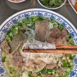 Today, I had a refreshing Vietnamese rice noodle soup with meat broth!