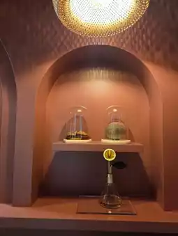 The interior is divided into 4 areas according to the Balveni whiskey years as shown in the photo.