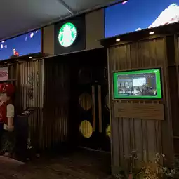 Jingdong 1960 Starbucks is a very distinctive store. It was renovated from an old theater and retains many retro elements, such as a high roof, a layered grandstand area, a playback room, etc.