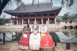 Wear a hanbok (traditional dress) 👘 and walk like royalty through this majestic Joseon-era palace. Guard changing ceremony = 📸 moment!