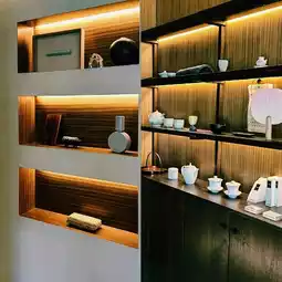 When you open the door and enter, the interior, decorated with low lighting, earth-colored walls, and wooden furniture, warmly welcomes you.