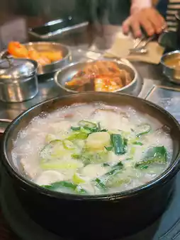 • Offers hearty Korean dishes like beef tripe soup, brisket rice soup, and boiled head meat