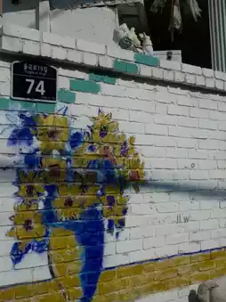 Ihwa Mural Village, located at the foot of Naksan Park in Jongno-gu, Seoul, is a hilltop neighborhood known as "Dal-dongne" or "Moon Village." In 2006, the "Naksan Project" brought together around 70 local residents, artists, and students to create colorful artworks on walls and staircases. Today, the area boasts over 100 pieces of art, transforming it into one of Seoul's most photogenic spots.