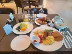Breakfast includes a main dish, along with a salad bar offering a few types of bread, fruits, and salads. During the hour I was there, only two tables were occupied. I wouldn’t particularly recommend the breakfast. The hotel has a high proportion of foreign guests.