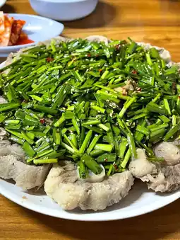 After eating, you can ask the hostess to make some soup. Add some chopped green onions and tofu, and throw in any leftover meat.