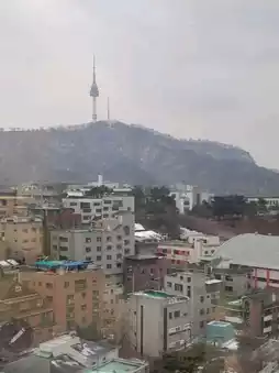 The upper floor faces the Namsan Tower in Seoul, South Korea🗼, and the scenery is beautiful both day and night, which is an unforgettable scenery😍.