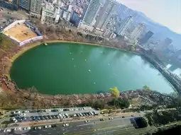 From the room, you can enjoy a panoramic view of Seokchon Lake, catch glimpses of Songpa District’s cityscape, and even see a bit of the Han River. The KT Building office is directly across from the room.