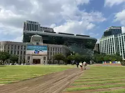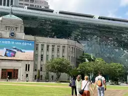 The plaza in front of Seoul City Hall was impressive as a wide open space in the city center. Citizens were freely resting or taking a walk on the lawn, and the Seoul Library and high-rise buildings were in harmony around it, allowing me to see the cityscape at a glance.🌳