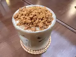 Sweet lotus scramble is on top of the strong coffee + cream,