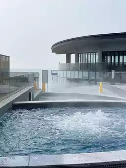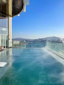 Infinity pools 🏊♂️ are something many people have experienced, but an outdoor infinity heated pool is undoubtedly a "high-cost" investment for hotels. Just imagine, in Seoul's freezing weather, it takes massive electricity and resources to allow guests to sit in a jacuzzi surrounded by steam while enjoying a panoramic view of the Han River 🫧.
