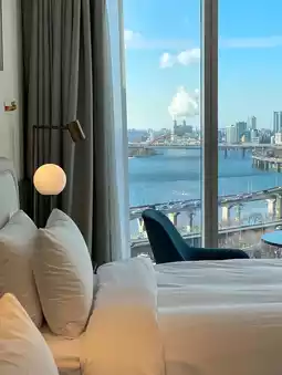 The hotel is conveniently located, just a 4-minute walk from Mapo Station on Line 5, and most rooms offer stunning views of the Han River.