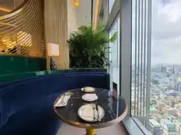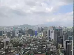 The lounge has a view of Namsan Seoul Tower and Yeouido.