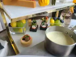 The cream-based items that dominated the previous two seasons have been replaced with bakery-based offerings. The plating now opts for uniformity between the first and second tiers. There are also noticeable efforts to enhance the savory items.