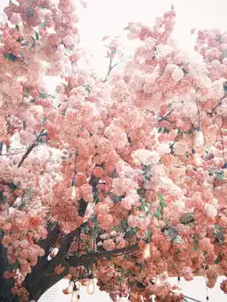 The terrace seats on the second floor are decorated with a large, beautiful tree🌸.