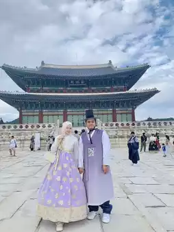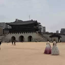 The palace grounds are wide and open — perfect for slow walks and dreamy photos. Wearing hanbok makes the experience extra special (and entry is free if you wear one!).