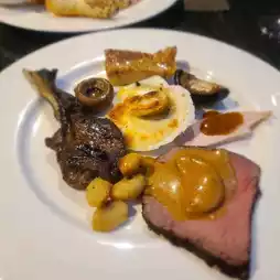 The festive season buffet features an extravagant menu. It's truly a feast with dishes that could make the table legs buckle. King crab, lobster, roast turkey, tomahawk steak, and lamb chops all vie for the spotlight.