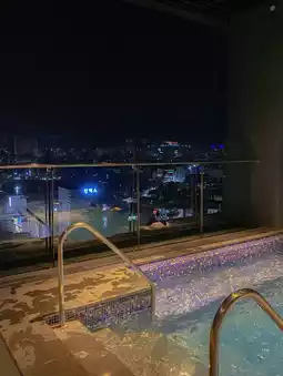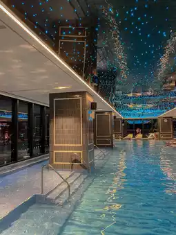 The Sofitel swimming pool has a great view from the high floor during the day, but at night, the luxurious lighting on the indoor ceiling makes it look like countless stars are embroidered in the night sky. 💫