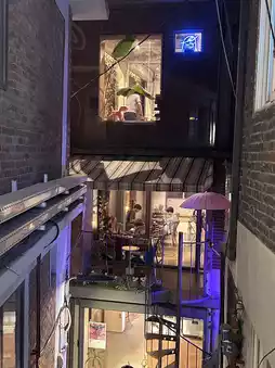 It's located along Shinheung-ro, the central alley of Haebangchon.