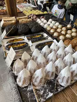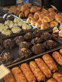🫶🏻 Dessert Review: We ordered five pieces in total, including their best-selling items: Pandoro: Volcanic bread topped with generous amounts of icing. The bread is soft and dense, and the large pieces are sure to fill you up. Chestnut Whipped Cream Choux: The cream puffs here are crispy on the outside and soft on the inside. The cream isn't too sweet, so you can keep eating them. Strawberry Choux: This one was delicious. I didn't think it would be that good at first, but the crispy, crumbly choux pastry and the smooth, creamy whipped cream complemented the juicy strawberries perfectly. Charcoal Bread: This bread doesn't look pretty, but I can tell you it tastes amazing. It's salty and fragrant. The bread is infused with charcoal and has cheese inside. The pieces are huge, perfect for several people. Bell Pepper Pizza Bread: This one is also delicious and can be eaten as a savory dish. The pizza has a rich, peppery flavor and cheese.
