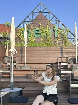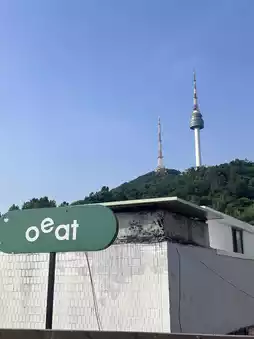 This cafe is called Oeat, and it's a cafe with a great view and delicious drinks. They have a rooftop terrace where you can enjoy views of Namsan Tower and the sunset in the evening. The atmosphere is wonderful. The cafe is located in Haebangchon, a popular new area in Seoul. I really like this area. It's a hilltop feel. The cafe has several floors, with the top floor being a rooftop. If you come in the evening, it's the perfect place to experience it. I really like the cocoa, which is incredibly refreshing and delicious. I came here because I asked a local about a recommended place, and they recommended it. I really like it.