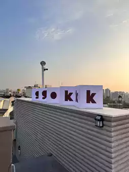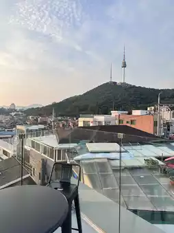 This is ggokk in the Haebangchon area. It's one of my favorite cafes on the trip. The atmosphere is amazing. The shop's decor is beautiful, with multiple floors, every floor is beautiful! Every angle is photogenic. It's the best! I'd love to go back to this place again. We went just as the sun was setting, and the view was amazing! It's definitely romantic with my partner. If you're looking for a relaxing place with a beautiful view, I highly recommend this place. The desserts are delicious and the drinks are delicious. However, the menu is still limited, so it seems like they just opened. You should definitely check it out.