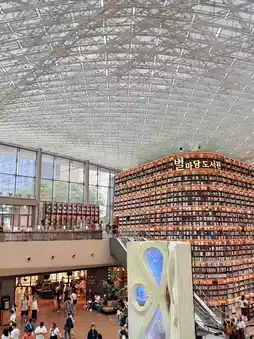 If you're on a date in Seoul and looking for a cozy indoor spot on a rainy or hot day, we recommend visiting the 'Starfield Library' located at the center of COEX Mall. This open library allows anyone to freely read books, and its 16-meter-high bookshelves and stylish interior make it a popular spot for Instagram-worthy photos.