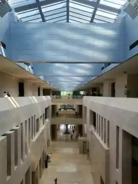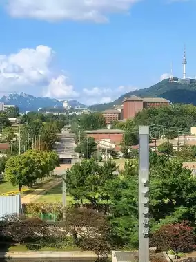 The museum features a stunning central lake that adds to its beauty. Behind the museum, you can catch glimpses of Bukaksan Mountain and Namsan Seoul Tower peeking out.