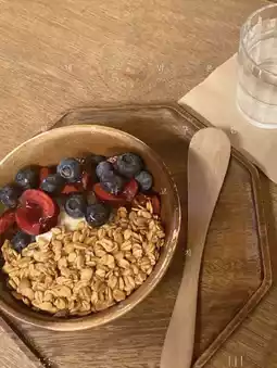 🥣THANKS, OAT Yogurt & Granola is a cafe specializing in Greek yogurt. Their Greek yogurt is homemade, and they have two locations: one in Yeonnam and one in Anguk. The cafe is small, one-story, decorated in warm tones with cute wooden furniture. Besides Greek yogurt, they also offer sandwiches and a few drinks. 🫶🏻Review: I really love Greek yogurt, and this is one of my favorites. Their Greek yogurt is thick and dense, like cream cheese and whipped cream. It has a perfect tanginess, contrasting with the sweetness of honey and berries. Paired with their signature granola, it's even more delicious! 😋 One cup is enough for one person, lol. The atmosphere was quite good on the day we visited at lunchtime, and there were quite a few diners inside, but there was no need to wait. The staff were friendly and welcoming. They also offer free drinking water.