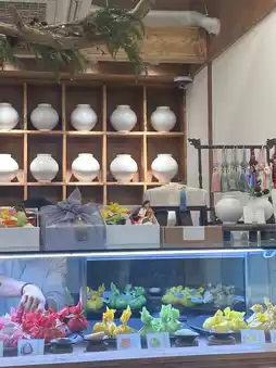 This is a Korean dessert shop that makes treats from tteok (Korean rice cake), which resembles Japanese mochi. Inside, they are filled with a variety of fruits combined with different cream flavors. There are over 10 flavors to choose from!