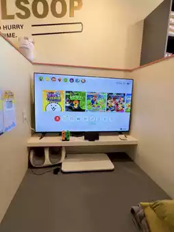 Relax in a private room watching Netflix movies, lounge on a comfy sofa for a nap🛋, and enjoy LP records, Nintendo games, manga, and even massages—all for free!🕹️