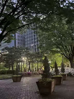 Yeouido Park 🏞️ is a public park in the heart of Seoul's Yeouido business district. It offers a lush atmosphere with large trees 🌳 and wide lawns for strolling or picnicking with friends 🧺.