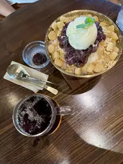 It's a great spot for quietly reading a book or enjoying some solo relaxation. On hot days like these, a bowl of shaved ice is perfect for cooling off while recharging your emotional batteries! 💡