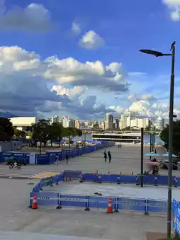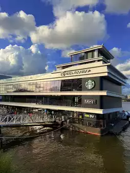 After delays in construction, the beloved ramen-eating spot by the Han River has finally returned to Yeouido during the scorching summer. Although the Han River Park is still under construction, one of the two floating platforms has opened, featuring a building connected to the Han River bus. The original 7-11 has been replaced by CU, BBQ Chicken has moved in on the second floor, and Starbucks occupies the third floor.