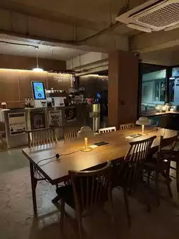 Introducing a Hapjeong emotional cafe with a cozy atmosphere perfect for working at night! It's great during the day, but at night, the soft lighting adds a touch of sophistication, making it the perfect space for a drink and some focused work.