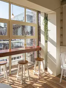 They specialize in pour-over coffee and lattes, offering delicate and mellow flavors. They also offer cakes, cookies, and other desserts to complement their dishes. Their Basque cake and pour-over coffee are especially recommended; the combination is perfect. The quiet atmosphere is perfect for some solitude, reading, or working.
