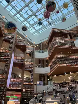 Already famous as a multi-purpose shopping mall, an incredible sight unfolds before your eyes starting from the 4th floor! On a rainy day, I entered Starfield to escape the rain and was greeted by this breathtaking view. While you can sit and read books, just admiring the scenery is equally delightful.