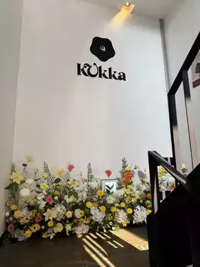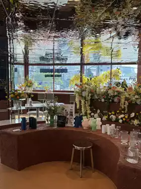 There's a flower shop attached to the cafe, and the entire cafe is covered in flowers.