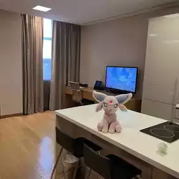 The suite building offers various room types, including character-themed rooms (Bebe Pin), spacious rooms, and two-story rooms. The two-story rooms feature two bedrooms and two bathrooms, providing plenty of space and comfort.