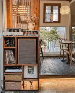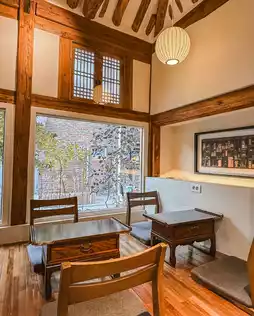This hanok cafe, located in an alley near Anguk Station, is a great place to stop by for a bite to eat. Inside, soothing music plays and a variety of hanok artifacts are on display.