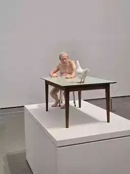 Famous for his hyperrealistic sculptures, Mueck explores the human existence, the body, and time through his work.