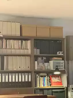 • The cafe is decorated like an office on the second floor, complete with desks, file drawers, chairs, and stationery.