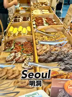 Myeongdong is one of Seoul's bustling shopping districts, perfect for a one-stop dining, entertainment, and fun-filled experience. Street food like spicy tteokbokki, garlic bread, and various seafood skewers are fragrant, and the dazzling array of Korean beauty and clothing stores will keep you coming back for more.