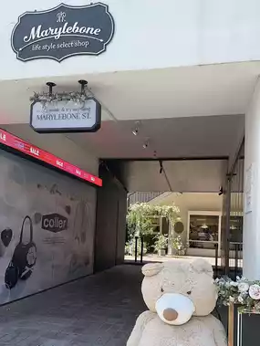 Look for the big bear at the entrance! 🧸